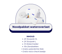 Bewaar Slurpzakken op een droge, koele plek waar je er snel bij kunt in een noodsituatie – bijvoorbeeld in een meterkast, opslagruimte of bij de nooduitgang. Zo voorkom je vertraging wanneer snelheid cruciaal is.